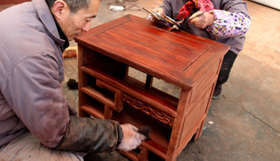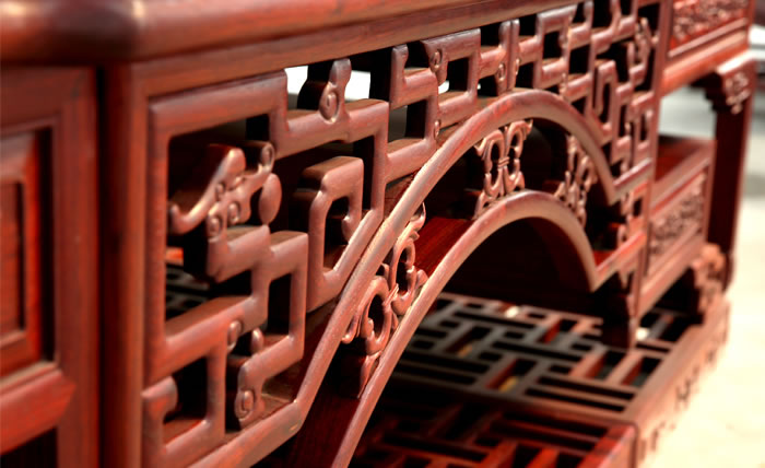 流程三雕刻工序 為了讓紅木家具看上去更美觀,在木工工序完成之后一般都會用一些或簡單或復(fù)雜的雕花來進(jìn)行裝飾,也就是行業(yè)中所說的雕刻紋飾。雕刻紋飾必須在“認(rèn)榫”完成后進(jìn)行,因?yàn)椤罢J(rèn)榫”時(shí)需要修整,如果先做好雕花再開榫,紋理很難保證雕花部件都在同一平面上,而此時(shí)為了保證雕花...